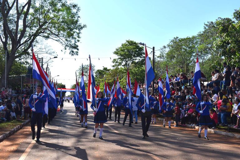 El desfile se desarrolló sobre la avenida Defensores del Chaco situada en inmediaciones del polideportivo municipal, donde además de los estudiantes estuvieron presentes autoridades distritales, departamentales y nacionales.