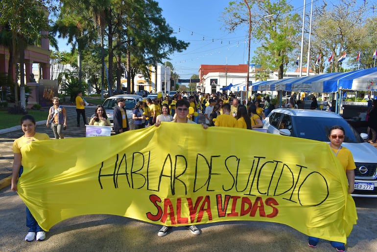 Con remeras distintivas, carteles y canticos, estudiantes de psicología de la Universidad Nacional de Villarrica del Espíritu Santo (Unves) y la Universidad Católica (UC), de la capital guaireña, junto con alumnos de varios colegios, realizaron una marcha sobre las calles de la ciudad con el fin de concientizar al a ciudadanía sobre la importancia de la prevención del suicidio en el marco del Día Mundial para la prevención del Suicidio, que se recodó este 10 de setiembre. También se realizaron varias charlas educativas sobre el tema que también fue acompañado por la IV Región Sanitaria.