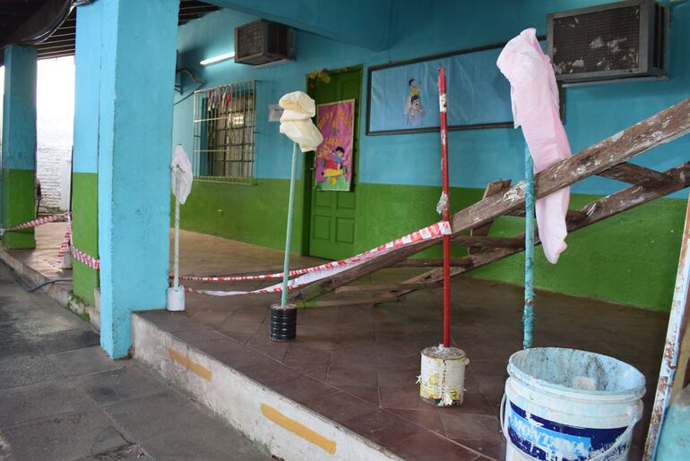 La estructura cae a pedazos y el Departamento de Riesgo del Ministerio de Educación y Ciencias (MEC) recomendó que de manera urgente sea derrumbada, ya que se encuentra entre el baño para niños y el aula del segundo grado con 46 alumnos.
