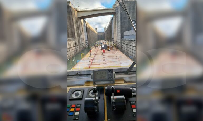 El capitán de navío señaló que recién esta mañana pudieron entrar a la esclusa y, siendo las 7:15 aproximadamente, ya se encontraba por terminar el proceso de llenado y vaciado para poder movilizarse.