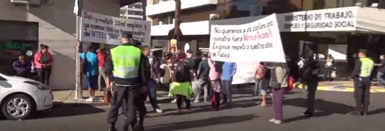 Los funcionarios del Ministerio de Trabajo denuncian que la nueva ministra, Mónica Recalde, “persigue” a personas que formaron parte del gobierno de Marío Abdo Benítez. Por este motivo, se manifestaron frente al edificio ministerial.