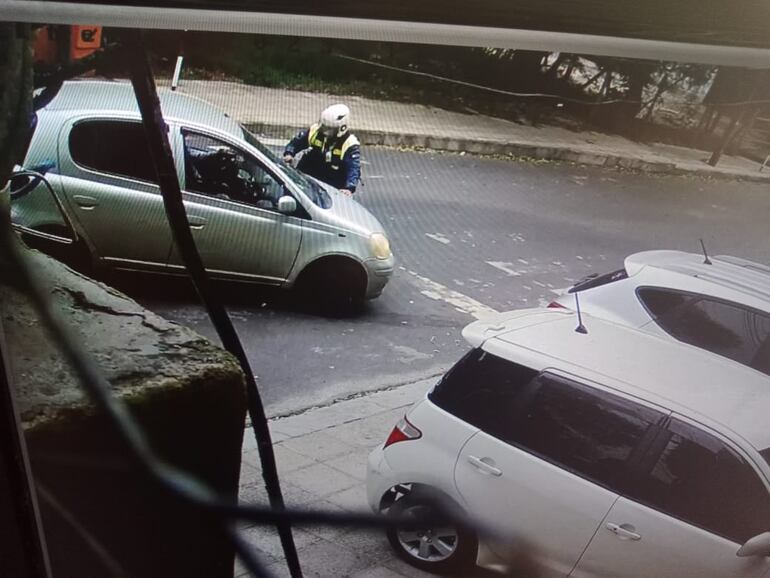 Imágenes de circuito cerrado muestran el momento en el que un vehículo arrastra a un agente de la Policía Municipal de Tránsito (PMT) de Asunción.