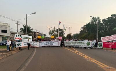 Los funcionarios, alumnos y educadores de la Facultad de Ciencias Agrarias, Facultad de Ciencias Económicas y de Filosofía, filiales de San Pedro de Ycuamdandyyú de la Universidad Nacional de Asunción, paralizaron las actividades académicas y se movilizaron ayer en la capital del segundo departamento, en apoyo al reclamo de nivelación salarial de los docentes.