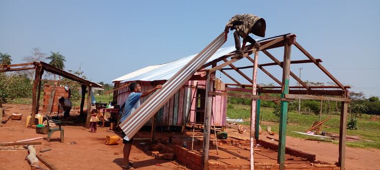 Cayetano Mendoza, domiciliado en Calle 12.000 Defensores del Chaco de San Estanislao, es uno de los afectados por el temporal registrado el martes 12 de setiembre. Comentó que recibió 14 chapas de zinc de la Secretaría de Emergencia Nacional (SEN) y el resto que falta está retirando a crédito de una casa de materiales de construcción.