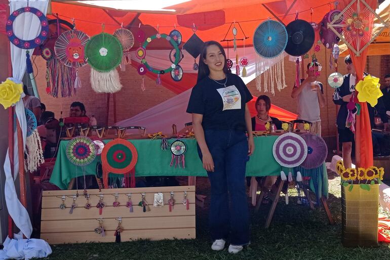 La joven se destaca como emprendedora pese a sus limitaciones. Consiguió desarrollar el talento con las manos, especialmente utilizando resina epóxica para elaborar “Recuerdos de Yuty” que son únicos en esta localidad.
