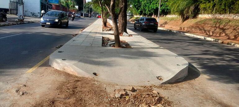 “Estamos encarando la instalación de baldosones en el paseo central de la avenida Bruno Guggiari, de unos 1.500 metros lineales, y de los trabajos se encargan los propios funcionarios de la Municipalidad y así se abarata la obra”, expresó el jefe comunal.