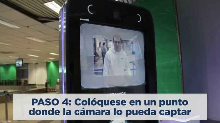 Luego de seleccionado el vuelo, el pasajero deberá colocarse frente a la pantalla en el punto indicado para la fotografía. Al finalizar la fotografía, deberá retirar su documento de la ranura.