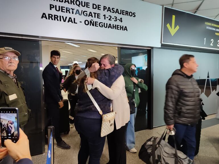 Emocionantes fueron los momentos de reencuentro entre los compatriotas y sus familiares en el Aeropuerto Internacional Silvio Pettirossi.