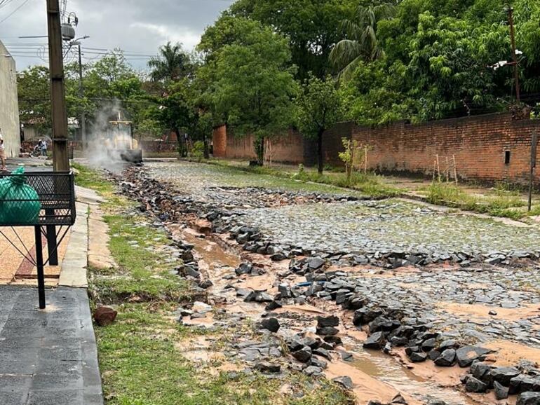 Arnaldo García, uno de los voceros, explicó que el problema surgió a cien metros del ex Hotel Itá Enramada. “Son obras complementarias, la gente quitó el empedrado, puso la cañería y llevó el empedrado, ya no volvió a poner, solamente puso pedregullos. Creemos que es para ahorrar costos”, explicó.
