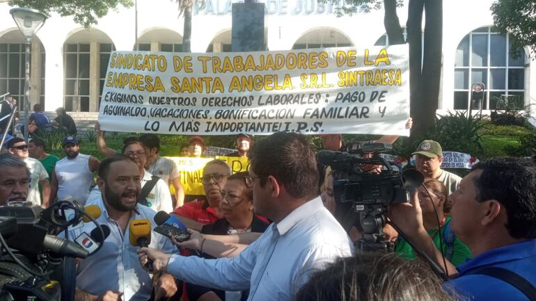“Tenemos trabajadores sin seguridad social, sin IPS, pedimos al Juzgado en lo Laboral que comunique de oficio la evasión en seguridad social”, dijo el abogado Juan José Bernis, quien acompaña la protesta.