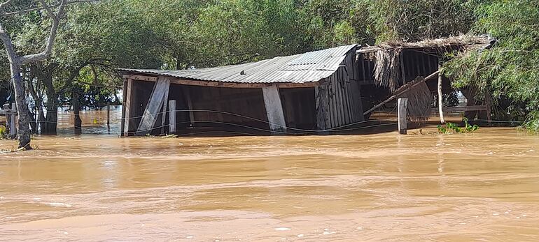 La inundación afectó a 25 viviendas construidas en la isla San Pablo que se encuentra a unos 1.500 metros del vertedero del brazo Aña Cua de la Entidad Binacional Yacyretá (EBY); siete ya fueron derribadas por la fuerza del agua.