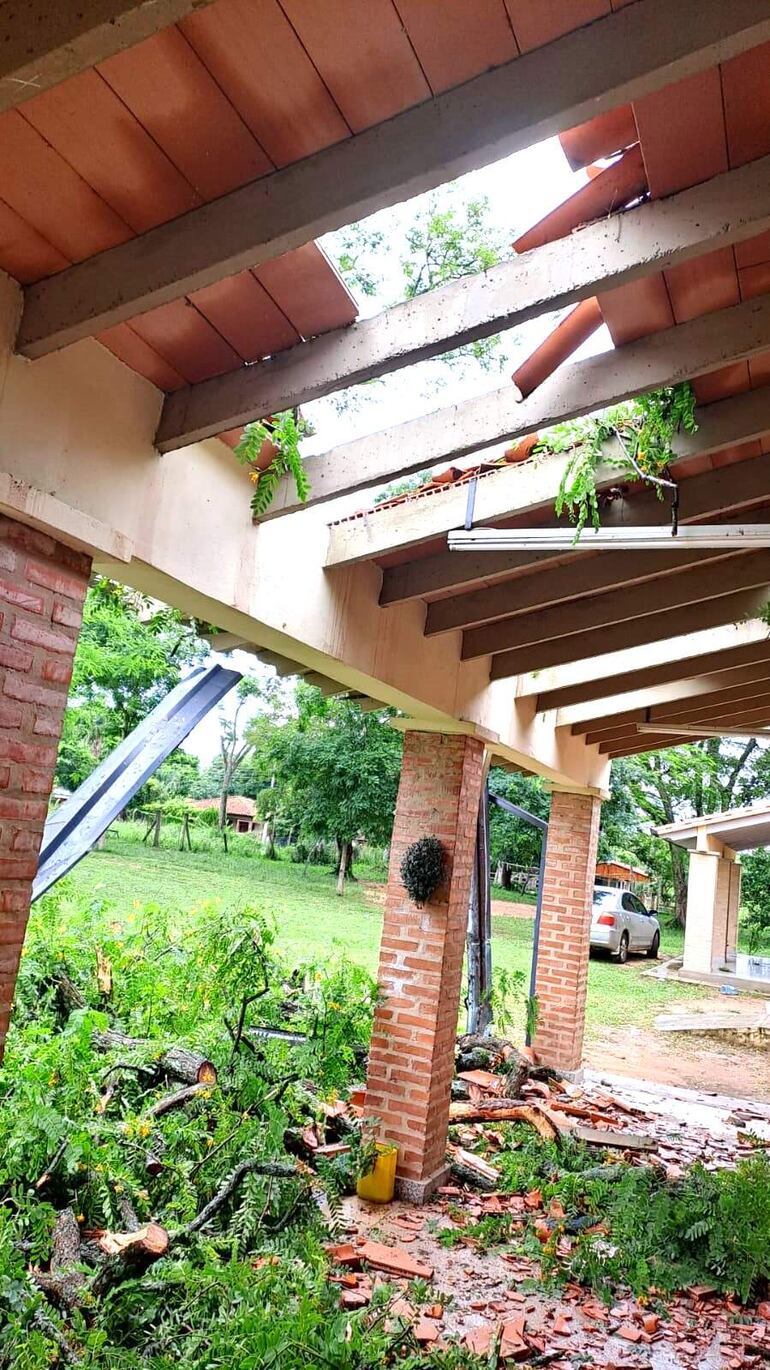 En el lugar, un árbol cayó sobre el techo del local de la institución y afectó parte de la galería, dos aulas, el tinglado y la caja receptora de señal de Internet del Ministerio de Educación y Ciencias (MEC), según explicó la directora de la escuela, profesora Maribel Ozuna.