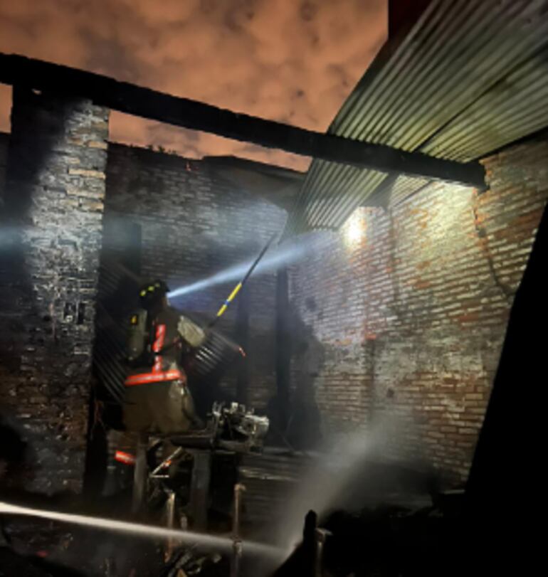 El comercial textil fue consumido en su totalidad indican los bomberos que se encuentran en la zona. El techo colapsó y se perdieron todas las mercaderías, así como las maquinarias que había en el lugar.