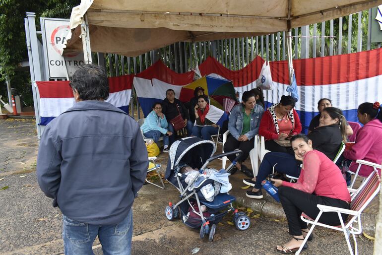 Los manifestantes se instalaron este lunes frente de los portones de ingreso a las oficinas administrativas de Yacyretá, sede Ayolas, para reclamar el pago por los servicios de limpieza realizados en diferentes instituciones educativas del distrito.