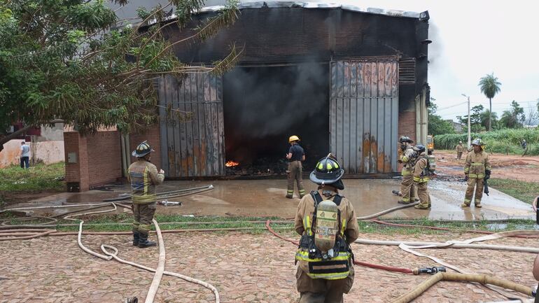 Voluntarios de las ciudades de Ñemby, Fernando de la Mora, San Lorenzo, Limpio, Villa Elisa y otras localidades acudieron al llamado de auxilio. Se concentraron para controlar el incendio que se produjo dentro del depósito de materiales de plásticos.
