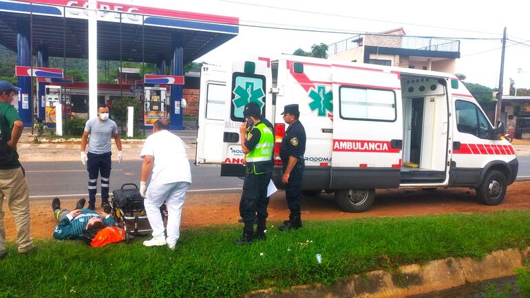 Los policías intervinientes solicitaron la presencia de personal de blanco del Centro de Salud local, que llegaron hasta el lugar del accidente y en ambulancia trasladaron al joven para su asistencia médica.