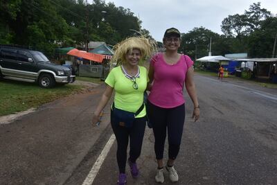 Con un peculiar sombrero pirí Jacqueline Franca y María Vicente Souza, con un sombrero de tela en el que se lee “Medicina” compartieron su felicidad de formar parte de la caravana de promeseros que llega a Caacupé. En el kilómetro 50 a un lado de la nueva rotonda que encauza el tráfico sobre la Ruta PY 02 comentaron su felicidad por formar parte de la caminata.