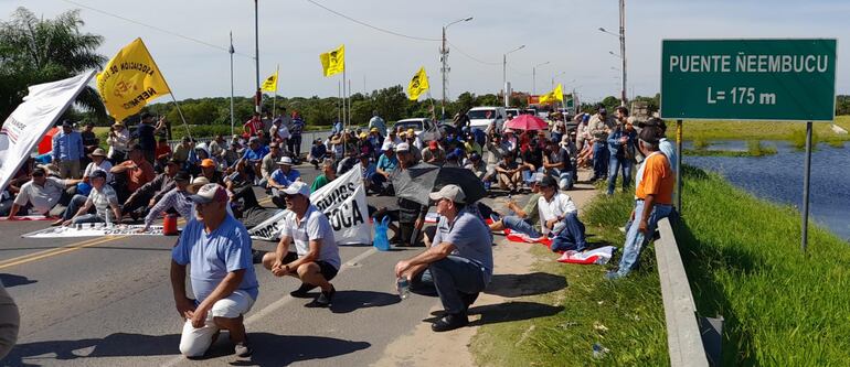 Un centenar de manifestantes cerraron el puente sobre el arroyo Ñeembucú en protesta por la aprobación de la ley de superintendencia de jubilaciones y pensiones en ambas cámaras del Congreso Nacional.