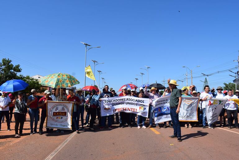 Una acalorada e incidentada manifestación de educadores del departamento de Paraguarí se realizó esta mañana a la altura del kilómetro 87, donde la Policía Nacional reprimió a los docentes quienes estaban cerrando la ruta. El sindicalista Juan Carlos Cáceres, a la fuerza, fue alzado en la patrullera y se procedió al despeje momentáneo de la ruta.