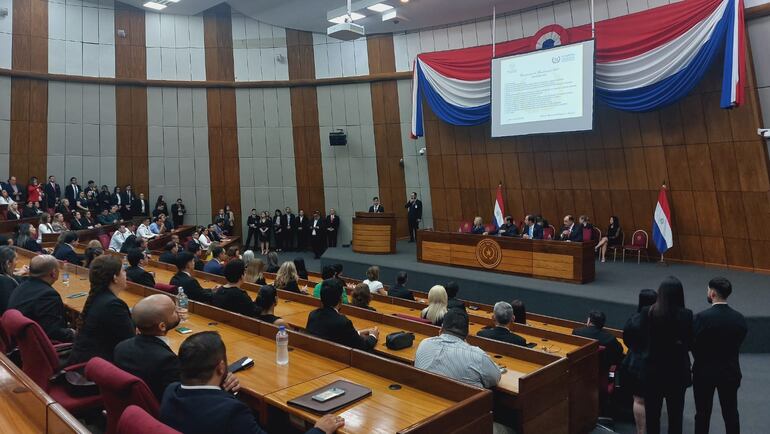 De la ceremonia de entrega de certificados de los tres diplomados ofrecidos por la Academia Legislativa participaron el senador Silvio Ovelar; senadora Hermelinda Alvarenga, vicepresidente segundo de la Cámara de la senadores, senadora Celeste Amarilla, el diputado Carlos Pereira, miembro de Conaderna; Cristian Gadea Saguier, director general de la Academia Legislativa, así como docentes, técnicos y funcionarios involucrados en el desarrollo de los cursos.