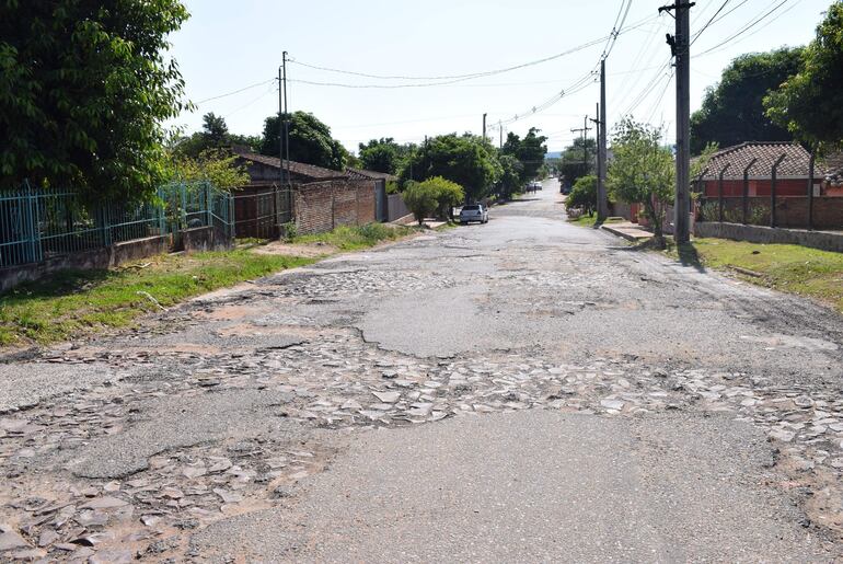 La calle Bernardino Caballero del barrio San Francisco se encuentra en deplorable estado, con enormes baches y cráteres, que dificultan el tránsito vehicular en este municipio. Dicha arteria se había asfaltado cuando el liberal Enrique Salyn Buzarquis fue ministro de Obras Públicas y Comunicaciones.