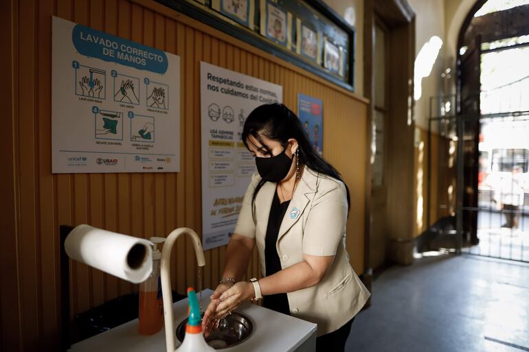 El uso de los lavamanos y el alcohol para prevenir el covid-19 volverá a ser una práctica en todas las instituciones educativas del país, según anunció esta mañana el ministro de Educación, Luis Ramírez, durante una conferencia realizada en el Palacio de Gobierno, luego de una reunión con el presidente de la República, Santiago Peña, el viceministro de Educación Superior, Federico Mora, y la rectora de la UNA (Universidad Nacional de Asunción), Zully Vera.