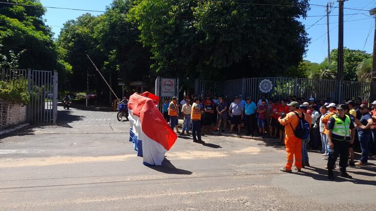 Durante la manifestación realizada en la mañana de hoy, los obreros del Consorcio cerraron de manera parcial la zona de ingreso al predio de la EBY. Cerca de las 12:00 se levantó la medida de fuerza de manera temporal.