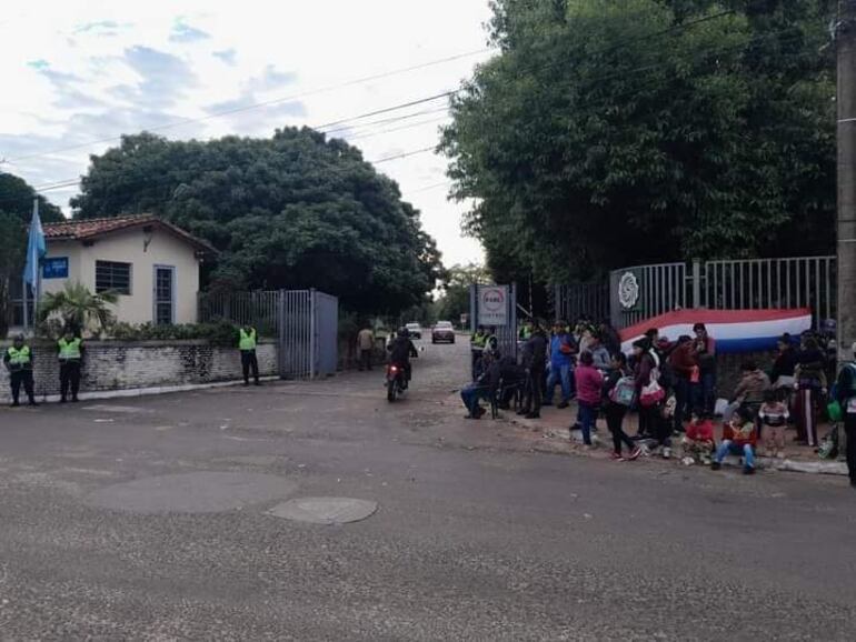 Los pobladores de la comunidad de Atinguy, una de las compañías del distrito de Ayolas, Misiones, se manifiestan frente a la Entidad Binacional Yacyretá (EBY), exigiendo la provisión de los kits de víveres y la renovación de sus contratos de trabajo, que corresponde a la limpieza de algas del puerto carrizal y arroyo Atinguy, como también de la limpieza del sendero G 2.