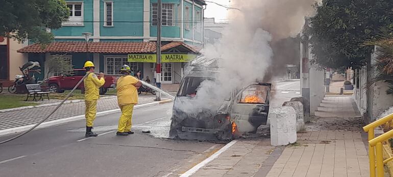 El conductor del vehículo, Víctor Oviedo, dijo que transitaba por la calle 14 de Mayo de la ciudad de Pilar cuando sintió algo caliente debajo de su asiento. Bajó del vehículo y se dio cuenta de que se estaba incendiando.
