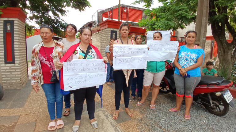 La madre de familia Carolina Estigarribia dijo que desde ayer están con la toma de la institución para exigir al MEC la colocación de tres docentes que cubran las vacancias. Indicó que exigen que el docente nombrado sea de la zona, en vista que en años anteriores fueron asignados educadores de otros sectores y al poco tiempo consiguieron sus traslados y dejaron nuevamente a la deriva a la comunidad. Señaló que muchos usan a la institución para conseguir sus rubros y luego se van a otra parte.