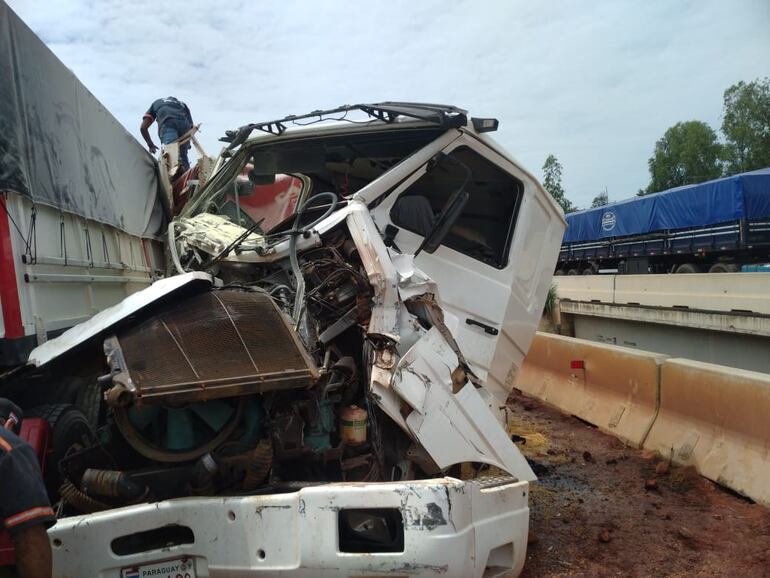 El otro camión de gran porte Scania involucrado en el percance era conducido por Hermenegildo Barrios Pereira (42). Este ultimo resultó con lesiones de consideración y fue trasladado a un hospital de la ciudad.