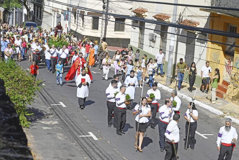 Hoy también resaltó en colores y concurrencia la procesión organizada por la Parroquia Nuestra Señora de la Encarnación de la ciudad de Asunción. La actividad comenzó en la Plaza Italia a las 9:00 con la bendición de palmas. Posteriormente, decenas de fieles caminaron hasta el templo parroquial con ramos y flores.