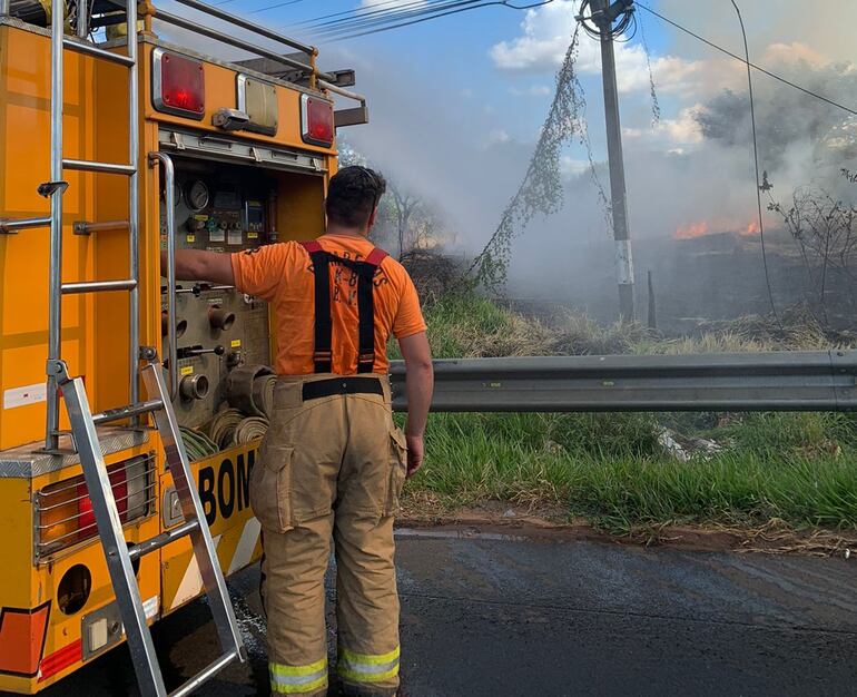 Según la bombera Micaela Noguera, los intervinientes volvían de un curso internacional que se realizaba en Ypacaraí y en su retorno hacia Capiatá notaron la intensa humareda generada por el incendio.