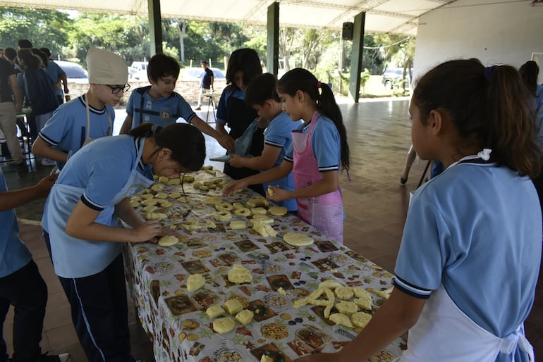 “Estudiantes de cada grado aprenden cómo se hace la chipa paraguaya, ñande chipa teete. Ellos traen los ingredientes, preparan la masa, después cocinan y finalmente degustamos entre todos”, agregó Cardozo.