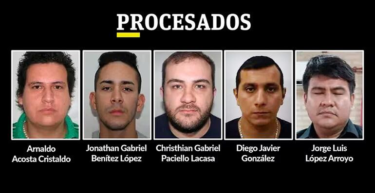 Los acusados por supuesto narcotráfico son Jonathan Gabriel Benítez, Diego Javier González, Arnaldo Acosta Cristaldo, Jorge Luis López Arroyo (boliviano) y Cristhian Gabriel Paciello Lacasa ( hermano del yerno del ex presidente Fernando Lugo).