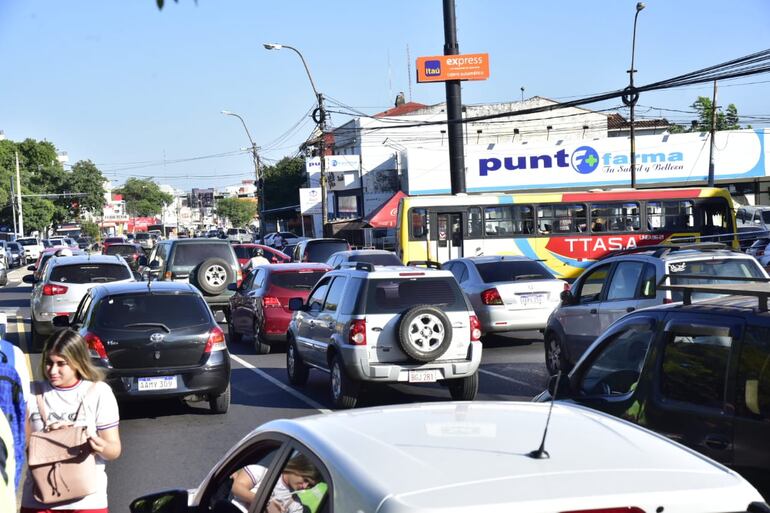 La medida de fuerza se realiza de manera intermitente pero ocasiona un gran embotellamiento en los carriles de ingreso y salida del centro de Asunción.