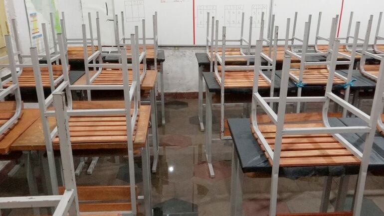 La falta de mantenimiento sería la principal causa del ingreso de agua a las aulas, a través de las goteras y filtraciones que no son reparadas en forma desde hace 15 años, a pesar de los pedidos realizados al Ministerio de Educación (MEC).
