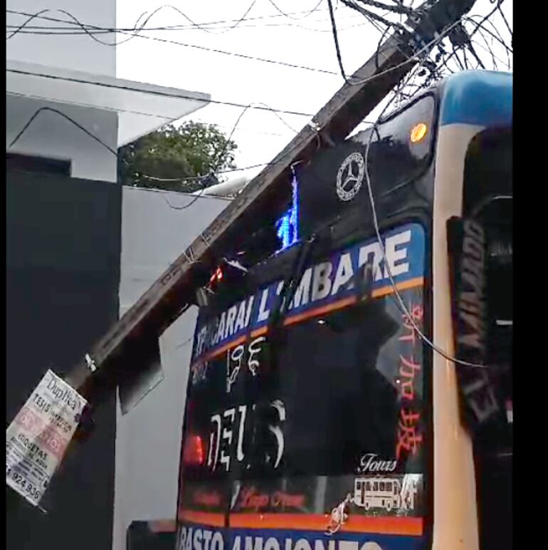 “A mí me reportó el chofer a las 06:20; es un itinerario que hacemos todos los días al estar al servicio de una empresa para traslados corporativos. Ahí hay un árbol que evidentemente no se recortó y con la tormenta se le habrá caído un cable; cuando pasa el ómnibus agarra la rama y los cables, se estira y cae la columna por la línea 128 que estaba en el lugar”, relató en comunicación con ABC Color.