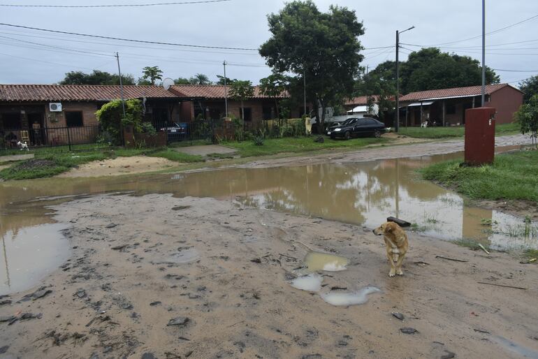 El presidente de la comisión vecinal, Miguel Amarilla, manifestó que una vez más las lluvias registradas afectaron a las 150 familias del citado barrio. A raíz de la falta de desagüe pluvial, las calles quedaron cubiertas por el agua.