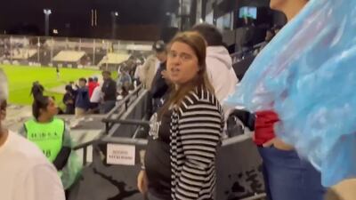 Ante la negativa del padre, la mujer señala que ella es socia y tiene “derecho”, a lo que el padre le indica que ellos llegaron temprano para ocupar ese lugar. “No me importa, yo soy socia”, responde la hincha. En otros fragmentos del video se escucha y observa a una de las hinchas actuar con violencia, primero verbal y luego física contra el padre de los niños.