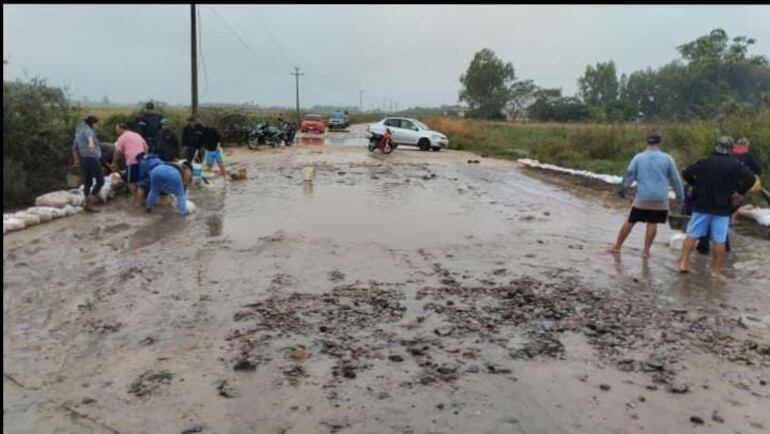 También los pobladores de Tuyú Cué distrito de Humaitá se quejaron de la falta de asistencia del gobierno. Los vecinos también con palas, azadas, baldes y otras herramientas de manos tratan de mejorar el camino desagotando de las aguas.