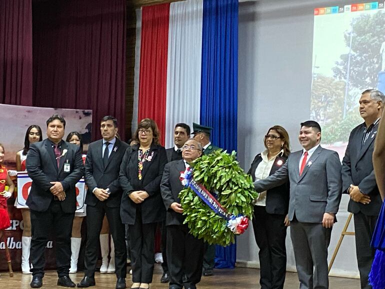 Luego se realizó la entonación del himno nacional a cargo de la banda de músicos de la 4ta. División de Infantería. El sacerdote salesiano Rufino Galeano Acosta se encargó del momento de oración. Autoridades de la Universidad Nacional de Concepción (UNC) realizaron la ofrenda de laureles.
