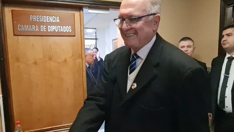 El fiscal general Rolón comentó a los trabajadores de prensa presentes en el Congreso que acudió a expresar, ante miembros de la Cámara de Diputados, su rechazo a un proyecto de ley que busca la expropiación de una propiedad del Ministerio Público en las inmediaciones del Palacio de Justicia, en Asunción.