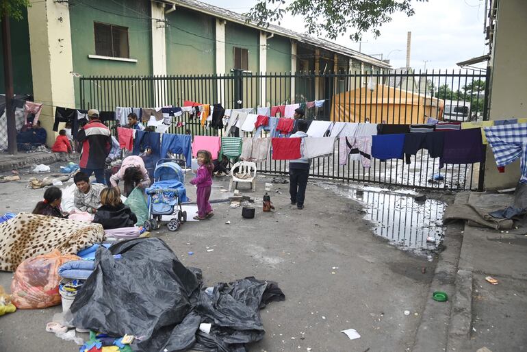 Intentamos acercarnos a este espacio, pero desde la Intendencia Militar, donde se ubica el Indi actualmente, militares de guardia informaron que solo se puede ingresar con permiso de las autoridades. En el lugar, se puede ver un pequeño grupo albergado bajo la carpa.