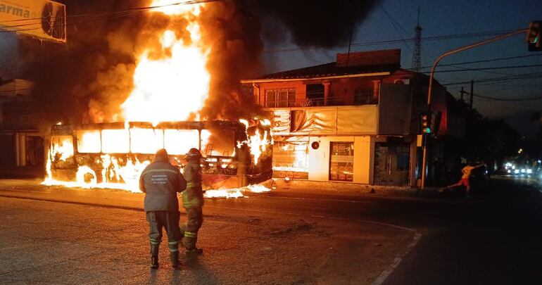 Un colectivo de la línea 52 del Grupo Lince se incendió esta tarde sobre la calle Julia Miranda Cueto y Gaspar Rodríguez de Francia de la ciudad de San Lorenzo. Tras el siniestro, las personas que estaban en la cercanía llamaron a los bomberos para apagar el fuego.