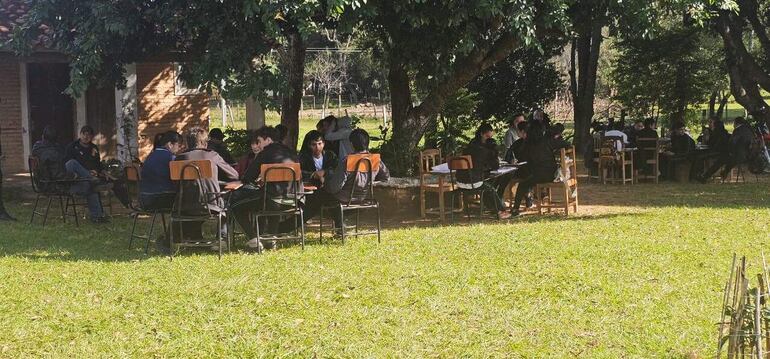 Ahora piden auxilio a las autoridades municipales, departamentales y del Ministerio de Educación y Ciencias (MEC), porque hace dos años que los escolares vienen desarrollando clases en la intemperie bajo los árboles, soportando frío, calor y cuando llueve deben buscar dónde refugiarse.