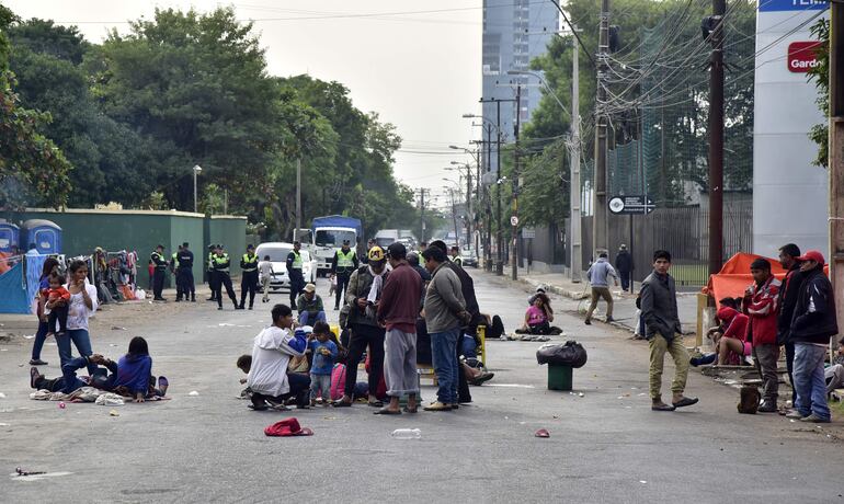 Esta semana, un grupo de indígenas del distrito de San Joaquín, Caaguazú, instaló un campamento frente a las oficinas de la firma DC Ingeniería en el barrio Los Laureles de la capital.