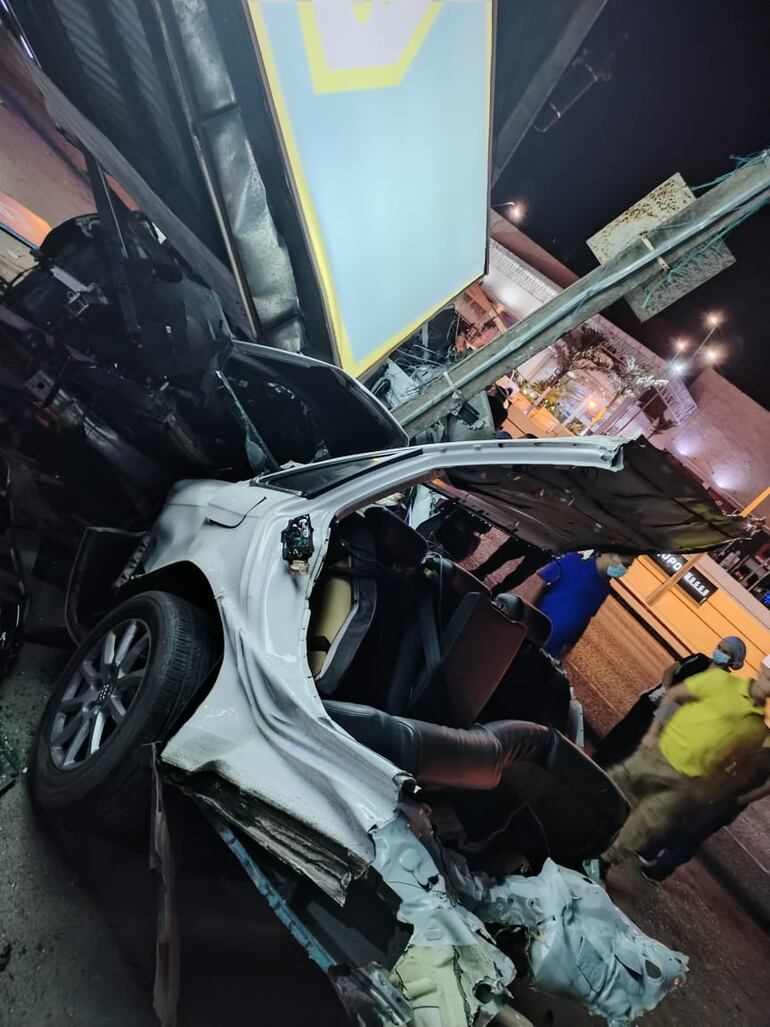 Tras el accidente, el vehículo quedó partido en la mitad debido al impacto que recibió al chocar contra la columna de cemento. Según algunos testigos, el vehículo iba a una excesiva velocidad, por lo que terminó en dichas circunstancias.