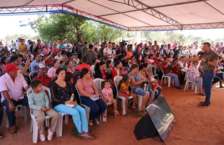 Agregó que hoy están entregando 124 casas para las familias, pero él aprovechó la oportunidad para rogar por algo que desde hace años necesitan. “Un aula nomás le pido, señor Presidente”, rogó.