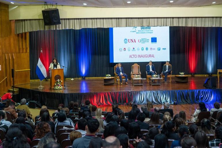 Durante la apertura, la rectora de la UNA, Zully Vera de Molinas, hizo mención de la importancia del proyecto, que fortalece la formación docente desde la colaboración, la investigación y la importancia de trabajar en alianzas estratégicas.